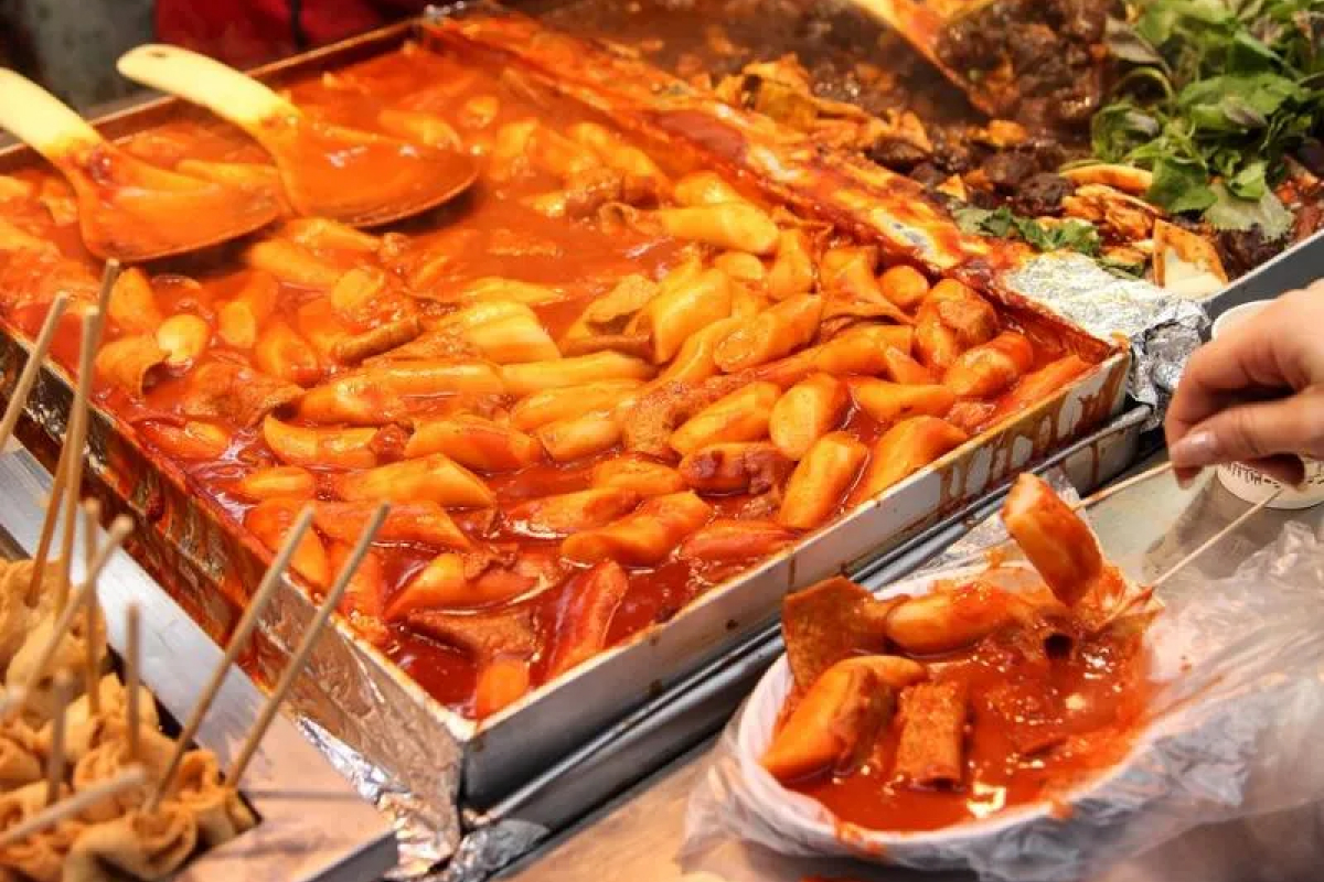 Tteokguk (Canh bánh gạo năm mới): Bánh gạo trắng tròn cắt lát, nước dùng bò trong vắt, rong biển, trứng – món ăn truyền thống mùng 1 Tết Âm. Chợ Gwangjang có hơn 10 quầy, giá 8.000 KRW.