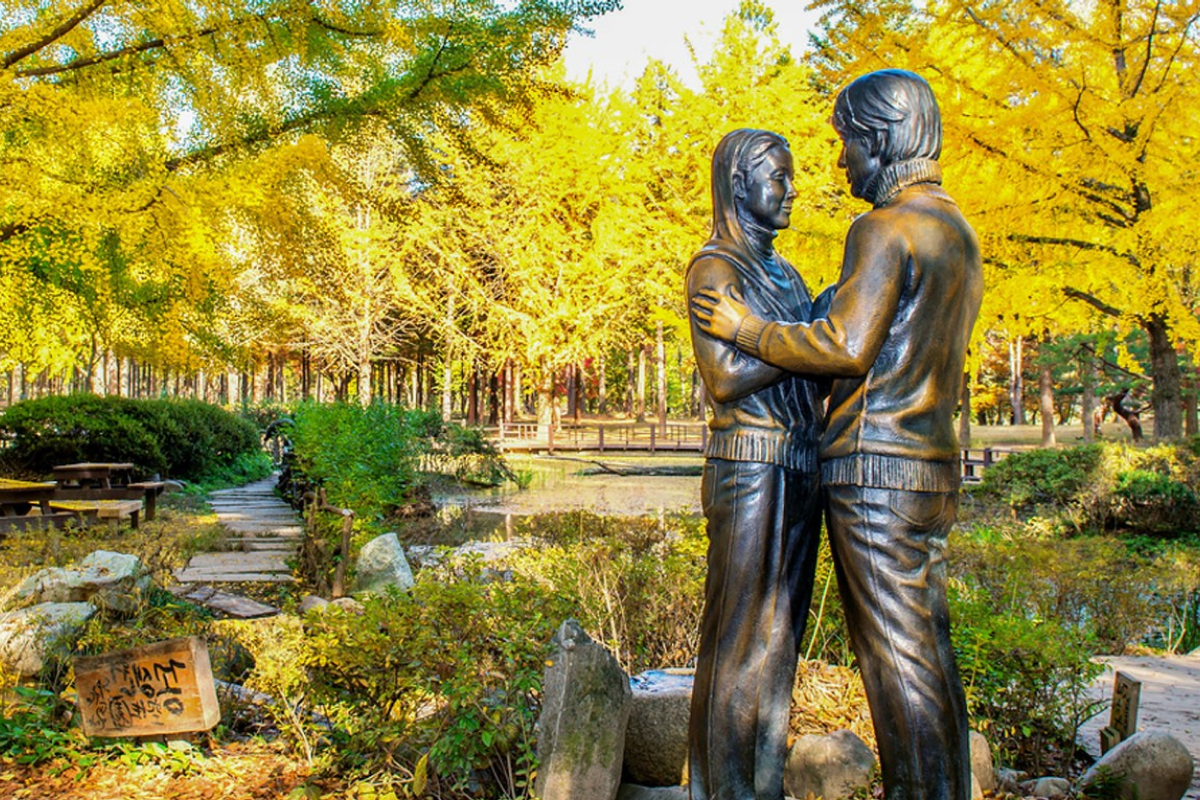 Mùa thu tháng 10, đảo Nami – nơi quay “Winter Sonata” – phủ sắc vàng rực của cây ngân hạnh, con đường tình yêu dài 1km lá rơi lả tả, đạp xe đôi hoặc dạo bộ giữa không gian lãng mạn như thơ. Đảo cách Seoul 1,5 giờ xe, có bảo tàng phim, nhà hàng Hàn, cây thông Giáng sinh sớm.