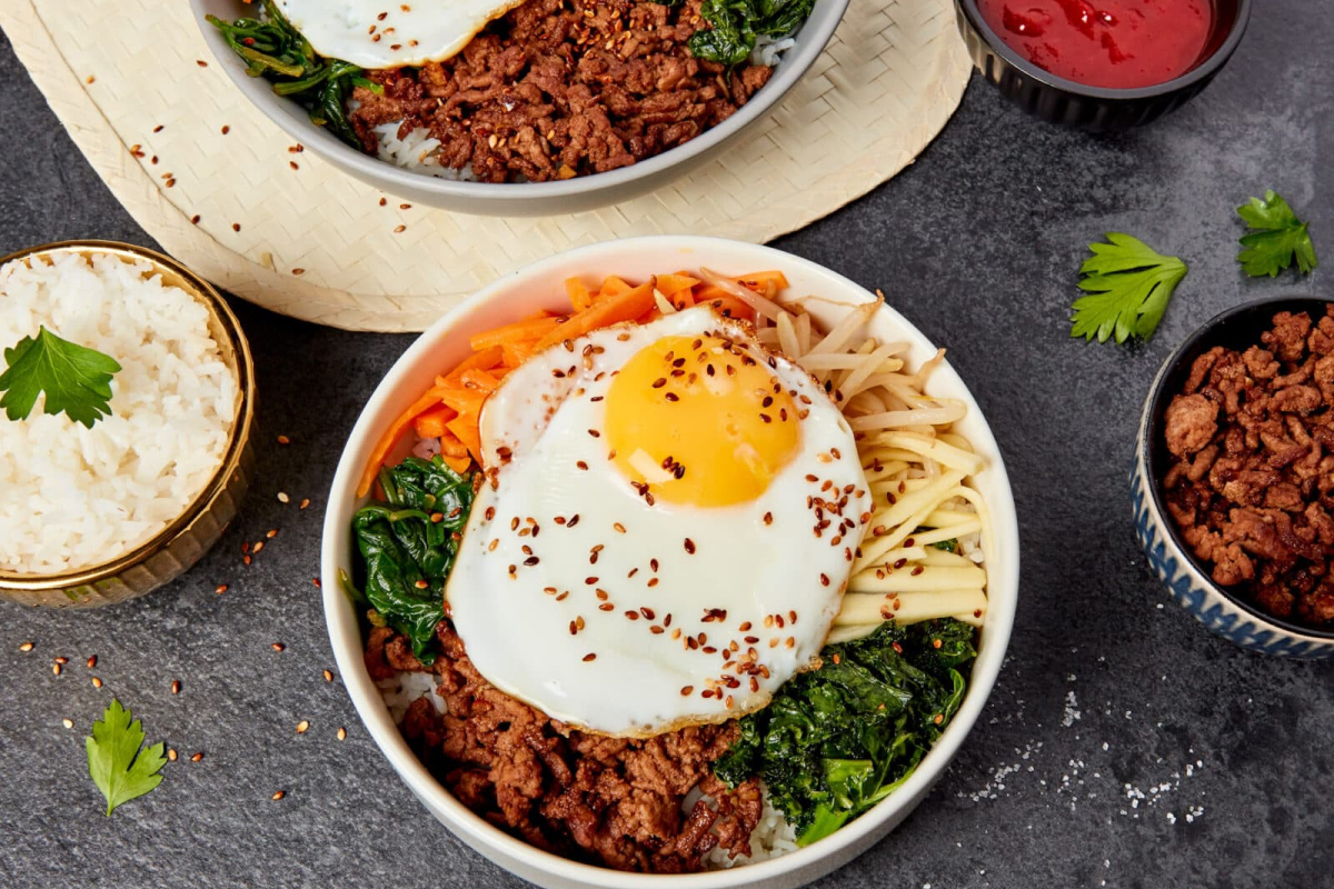Mùa xuân tháng 4, sakura bibimbap – cơm trộn hoa anh đào muối hồng phớt, rau mầm tươi non, trứng lòng đào vàng óng – xuất hiện trong lễ hội Jinhae. Món ăn này được trộn tại bàn, thêm dầu mè thơm lừng, ăn kèm dâu tây tươi ngọt lịm từ nông trại Nonsan.