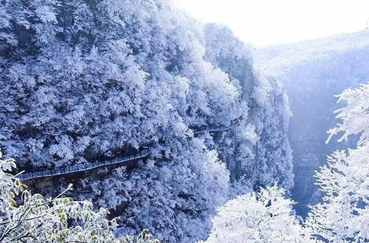 Trương Gia Giới, khu rừng đá kỳ vĩ ở Hồ Nam, trở thành tiên cảnh trong mùa đông với cột đá phủ tuyết và mây mù lãng mạn. Du lịch Trung Quốc mùa đông ở đây mang đến thời tiết se lạnh (0-10°C), lý tưởng để chiêm ngưỡng cảnh quan độc đáo. Sương mù và tuyết nhẹ làm nổi bật vẻ đẹp huyền ảo của các đỉnh núi, thu hút những ai yêu thiên nhiên.