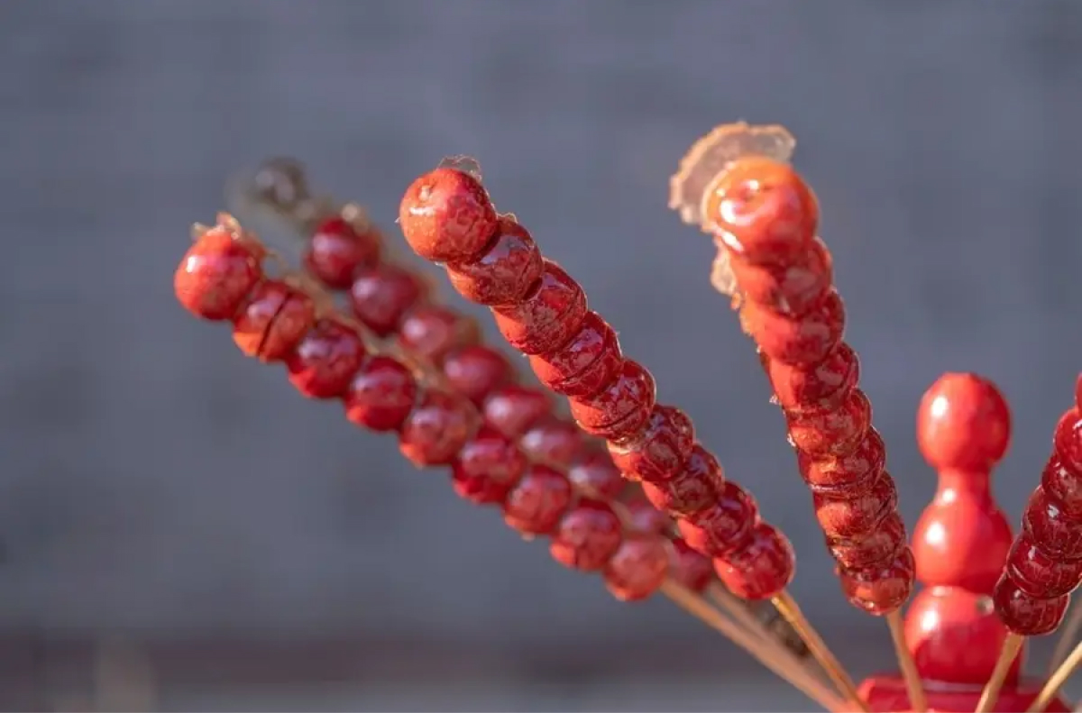 Tanghulu, kẹo hồ lô táo gai phủ đường cứng, là món tráng miệng đường phố rực rỡ, phổ biến ở Bắc Kinh từ thời Tống.