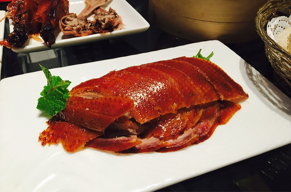 Thưởng thức với bánh tráng, hành lá, sốt đậu tại Quanjude hoặc Dadong.