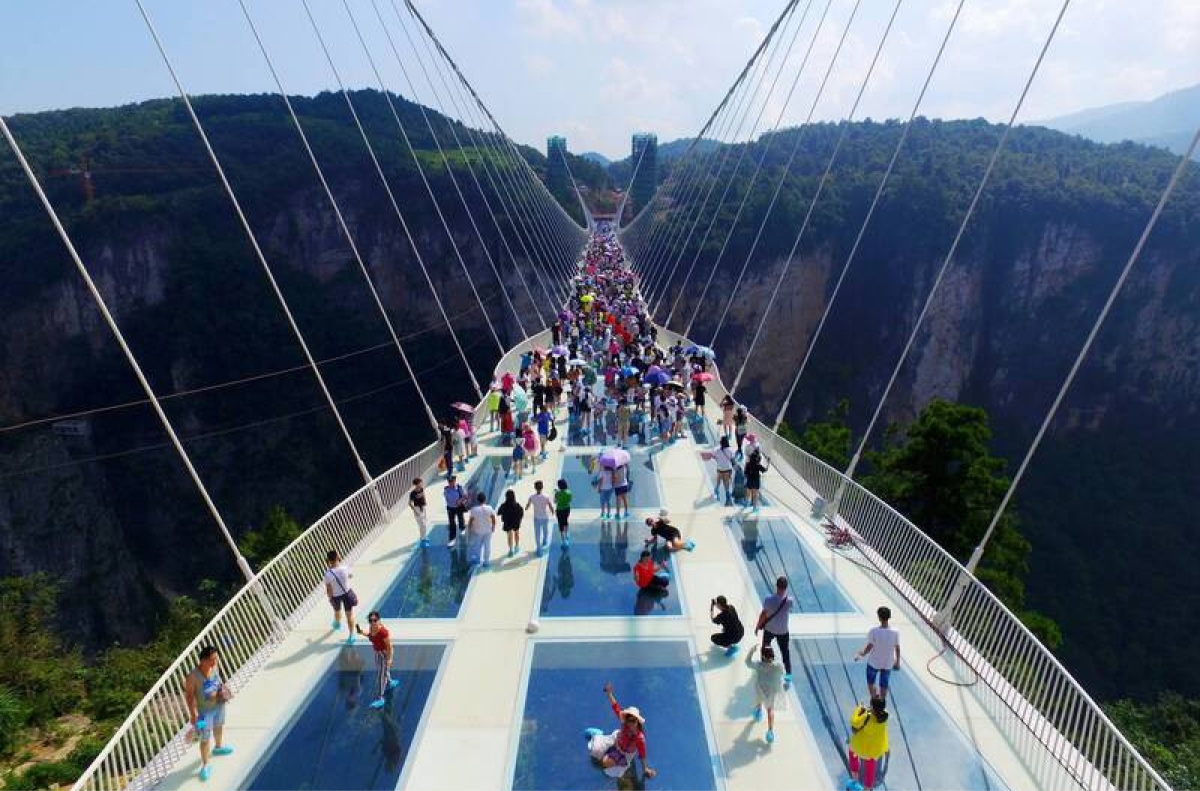 Cầu kính Đại Hiệp Cốc, cây cầu kính dài nhất thế giới, mang đến cảm giác hồi hộp khi bước đi giữa lưng chừng trời, ngắm thung lũng sâu thẳm.