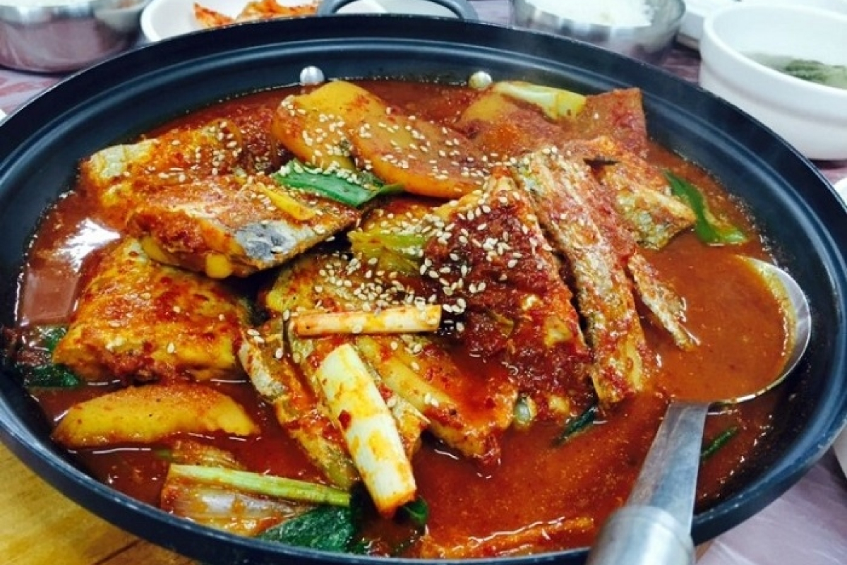 Món canh cá tươi đặc trưng của Jeju, thường dùng cá hồi, cá ngừ hoặc cá trứng.