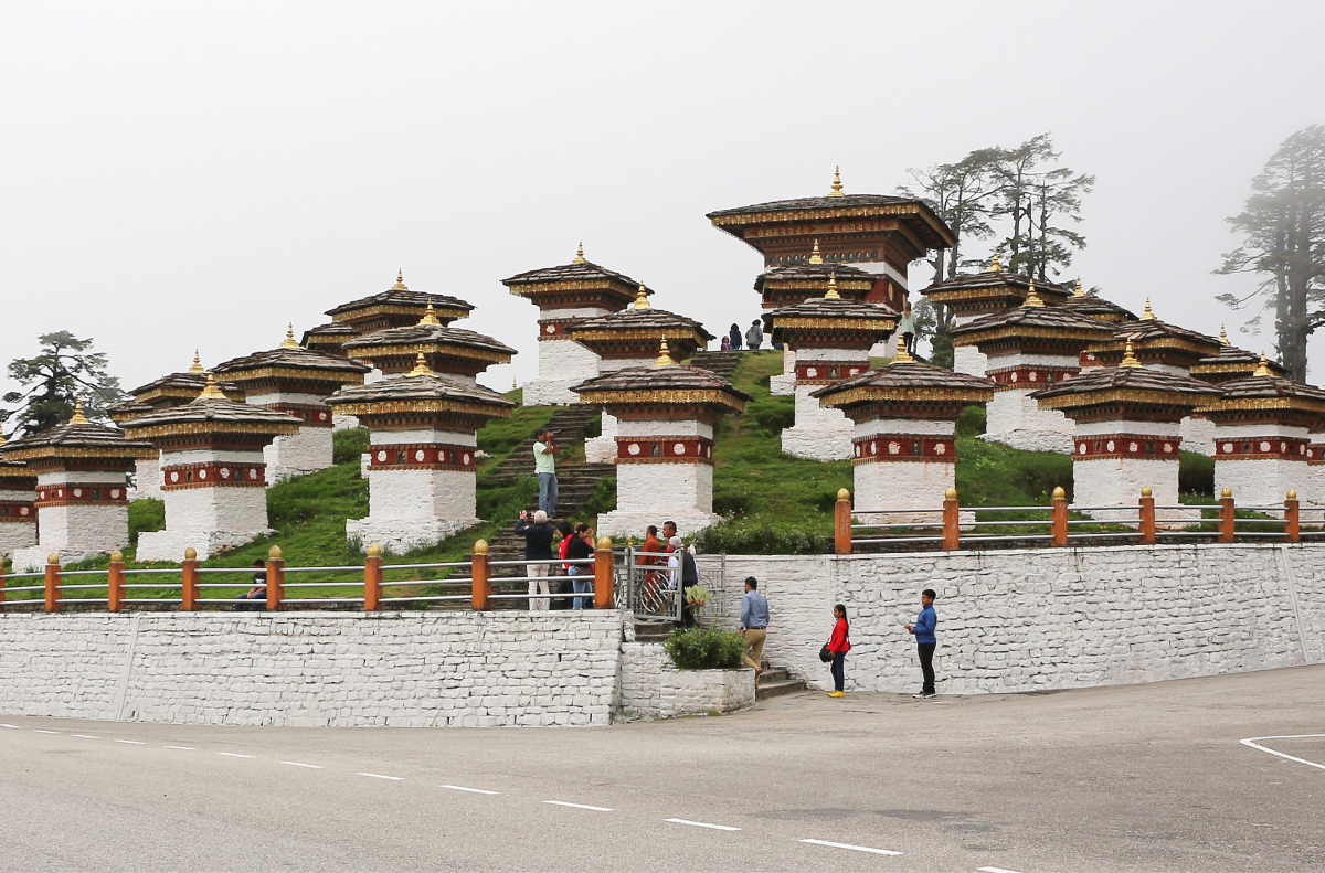 Dochula Pass là con đèo nổi tiếng nối Thimphu với Punakha, nằm ở độ cao hơn 3.000m. Nơi đây có quần thể 108 bảo tháp (chorten) trắng, được xây dựng để tưởng niệm các binh sĩ Bhutan. Vào những ngày nắng đẹp, từ Dochula Pass bạn có thể phóng tầm mắt ra dãy Himalaya hùng vĩ, một khung cảnh khó quên trong hành trình Bhutan. Ngoài ra, khu vực đèo còn có không khí trong lành, là điểm dừng chân lý tưởng để nghỉ ngơi, chụp ảnh và ngắm cảnh trước khi tiếp tục hành trình đến Punakha.