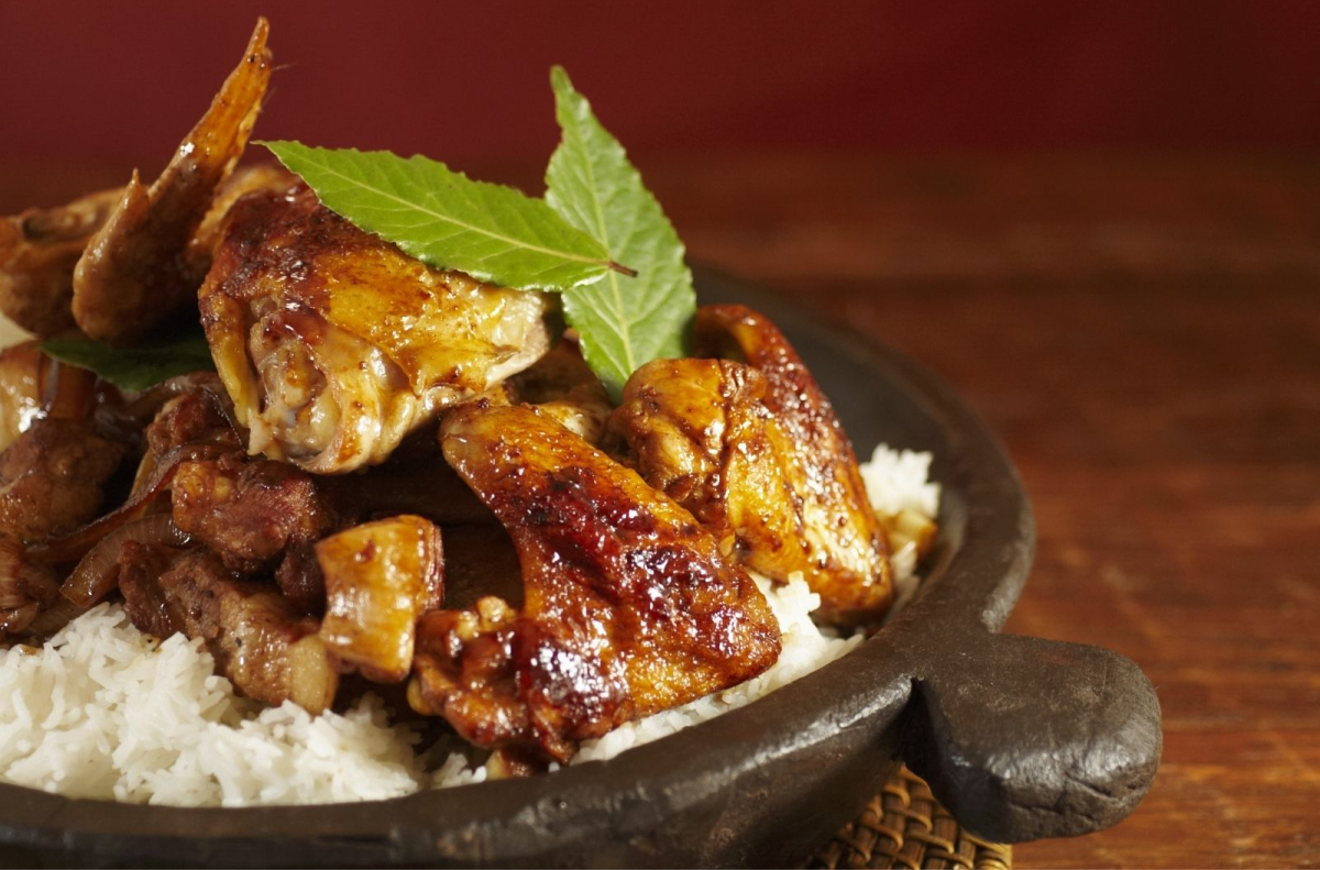 Đây được xem là món ăn quốc hồn quốc túy của Philippines. Adobo thường được chế biến từ thịt gà hoặc thịt heo, ướp cùng nước tương, giấm, tỏi và các loại gia vị rồi kho nhừ. Hương vị mặn ngọt hài hòa, thơm nồng khiến món ăn này trở thành lựa chọn quen thuộc trong mỗi bữa cơm gia đình cũng như tại các nhà hàng.