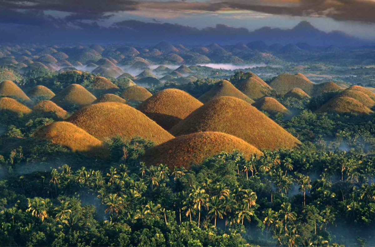 Bohol được biết đến với Chocolate Hills – hơn 1.200 ngọn đồi hình chóp đều đặn, đổi màu theo mùa: xanh vào mùa mưa và nâu vào mùa khô, tạo nên khung cảnh độc đáo hiếm có. Ngoài ra, đảo Bohol cũng là nơi sinh sống của khỉ Tarsier, loài linh trưởng nhỏ nhất thế giới, mang đến trải nghiệm gần gũi với thiên nhiên.