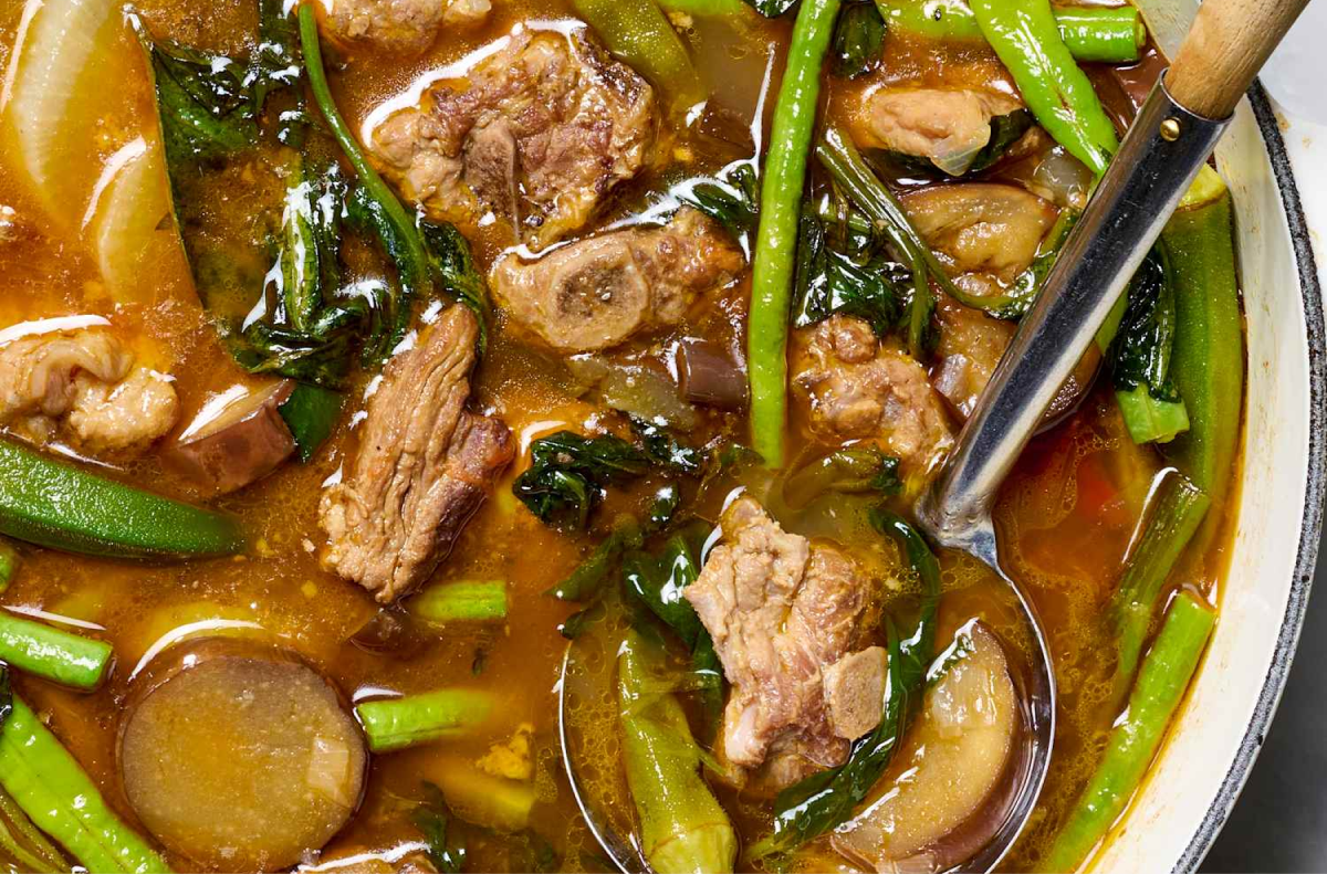 Một món canh chua truyền thống, thường được nấu với thịt heo, tôm hoặc cá, kết hợp cùng me chua và rau củ. Sinigang mang lại cảm giác thanh mát, dễ ăn, đặc biệt hợp khẩu vị với du khách Việt Nam vốn quen các món canh chua.