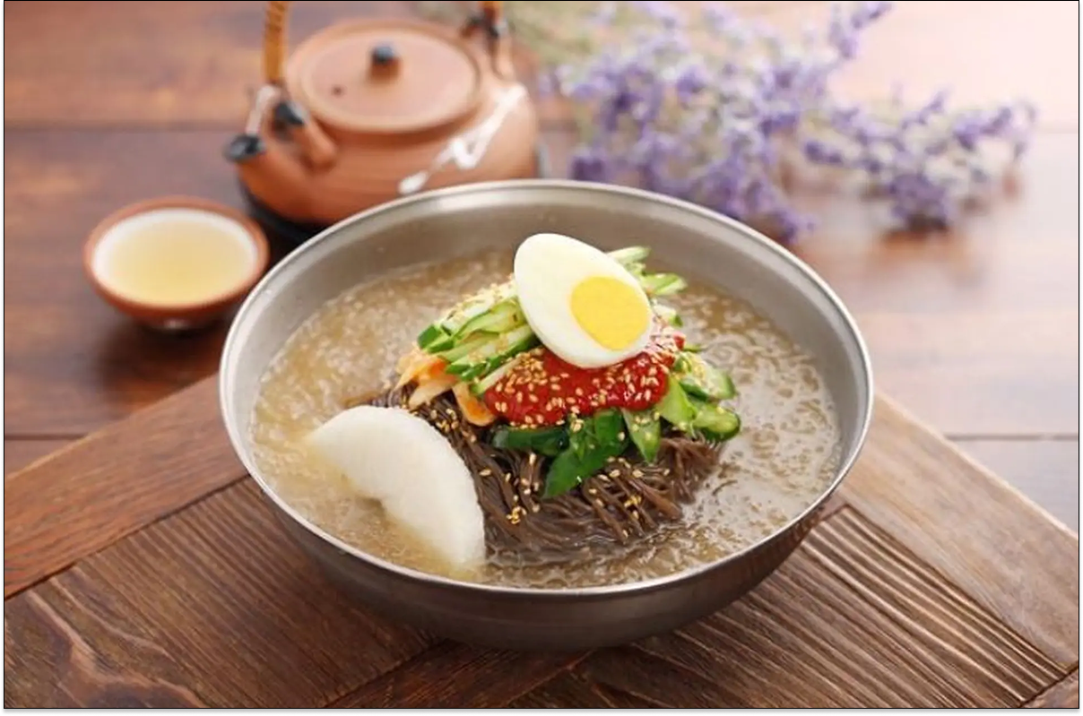 Naengmyeon là món mì lạnh làm từ bột kiều mạch hoặc khoai tây, nổi bật với nước dùng lạnh, thanh mát và rau củ tươi sống. Món ăn này thường được thưởng thức vào mùa hè, giúp giải nhiệt và mang lại trải nghiệm ẩm thực độc đáo. Khi ăn, du khách nên dùng đũa và thìa theo hướng dẫn, tránh tự ý thêm gia vị quá mạnh để giữ đúng hương vị truyền thống.