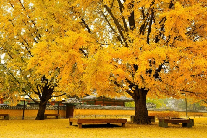 Lá phong là một trong những điểm nhấn nổi bật nhất của mùa thu. Nếu bạn có dịp đi du lịch Hàn Quốc hãy đến những khu rừng đầy màu sắc thì nhất định phải mang về những bức ảnh xinh đẹp nhất. Đặc biệt là các bạn trẻ về đây để check in bên những hàng tán lá phong vàng rực rỡ.