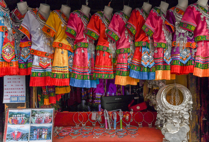 Điều du khách thích thú nhất, đó là có thể thuê quần áo trang sức hóa trang thành những người Miêu, chụp những tấm hình lưu niệm tuyệt đẹp. Giá một bộ quần áo đầy đủ phụ kiện là 30 nhân dân tệ (khoảng 100.000 đồng), không giới hạn thời gian, du khách sẽ thoải mái lựa chọn.