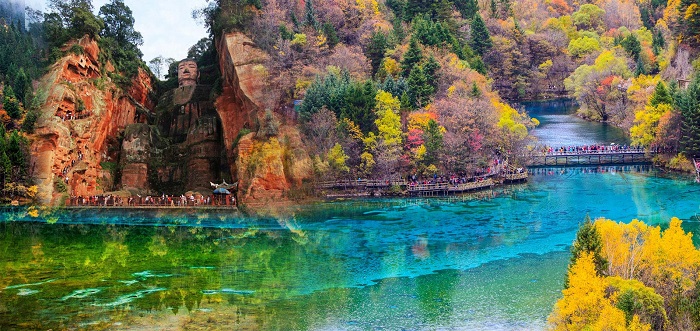 Jiuzhaigou đây là một khu bảo tồn thiên nhiên và Di sản Thế giới của UNESCO tại Tứ Xuyên, nơi được mệnh danh là Công viên quốc gia đẹp nhất Trung Quốc. Bạn sẽ rất ấn tượng với hình ảnh những thảm thực vật trên sườn núi chuyển màu vào thu và phản chiếu xuống những hồ nước trong xanh trong như một bức tranh sơn thủy hữu tình.