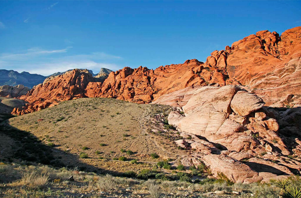 Đoàn tham quan Red Rock Canyon - gần Las Vegas, là một điểm đến hấp dẫn với những vách đá sa thạch màu đỏ nổi bật và cảnh quan sa mạc ngoạn mục. Nơi đây nổi tiếng với con đường vành đai dài 13 dặm (khoảng 20.9km) để du khách lái xe ngắm cảnh. Du khách có thể tận hưởng nhiều hoạt động ngoài trời như đi bộ đường dài, leo núi và ngắm động vật hoang dã. Red Rock Canyon còn là một khu vực bảo tồn cấp quốc gia, mang đến trải nghiệm thiên nhiên tuyệt vời và yên tĩnh, khác hẳn với sự ồn ào của thành phố Las Vegas.