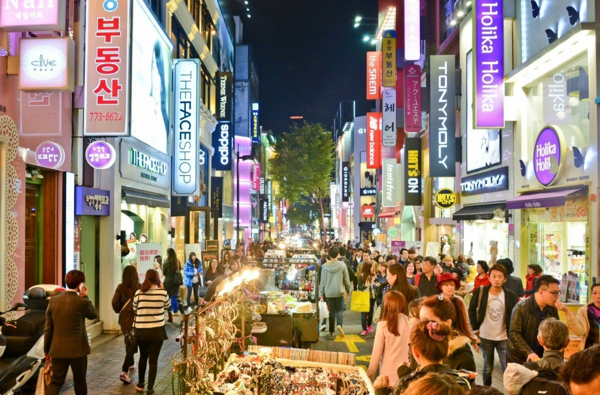 - Tham quan và mua sắm tại chợ Myeongdong – khu chợ trung tâm sầm uất ở Seoul.