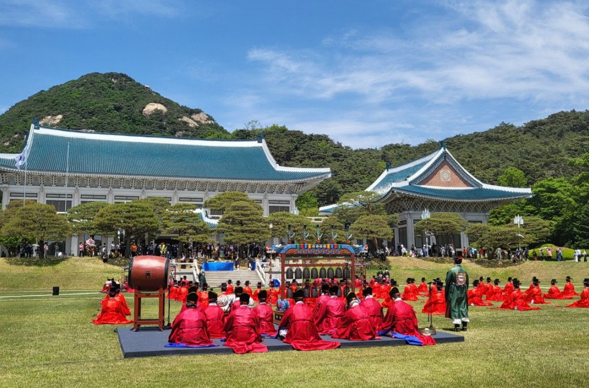 - Đoàn tham quan bên ngoài và chụp hình lưu niệm bên ngoài khu vực “Nhà xanh” (hay còn gọi là Cheongwadae) – nơi ở và làm việc của đương kim Tổng thống Hàn Quốc.