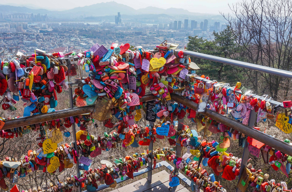 - Ấn tượng với các du khách đến thăm tháp là không gian tình yêu đầy ấn tượng, đặc điểm nổi bất nhất tại đây chính là “Hàng rào Ổ khóa tình nhân” sặc sỡ đủ sắc màu lãng mạn. Ở Seoul, các cặp tình nhân treo những chiếc ổ khóa ở khoảng sân thượng nằm ngay lối vào của tháp kèm theo một mẩu giấy nhắn như là một biểu tượng cho tình yêu của mình.